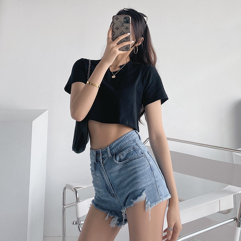 European and American ins king a word ripped denim shorts women 2021 summer thin section high waist slimming irregular raw edge hot pants