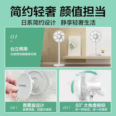 Emmett electric fan low-noise energy-saving household machinery fan floor fan wide-angle shaking head office vertical electric fan