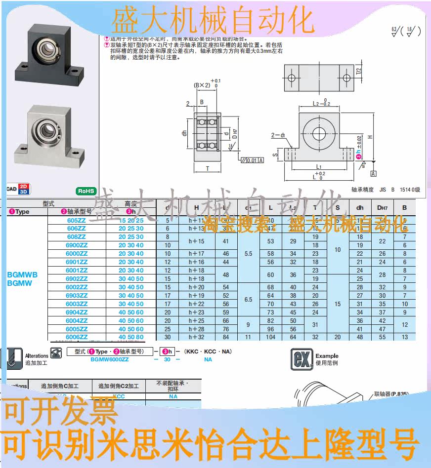 Bearing seat components T-type BGMWB BGMW6903ZZ 6003ZZ 6904ZZ-30 6904ZZ-30 40 50 60