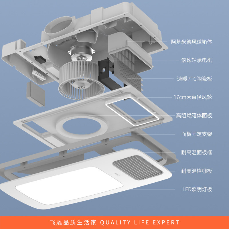 Flying Sculptures Warm Air Blower Bath Exhaust Fan Lighting Integrated Bathroom Integrated Ceiling Bath Bully with Neo Jia B Smart Baths
