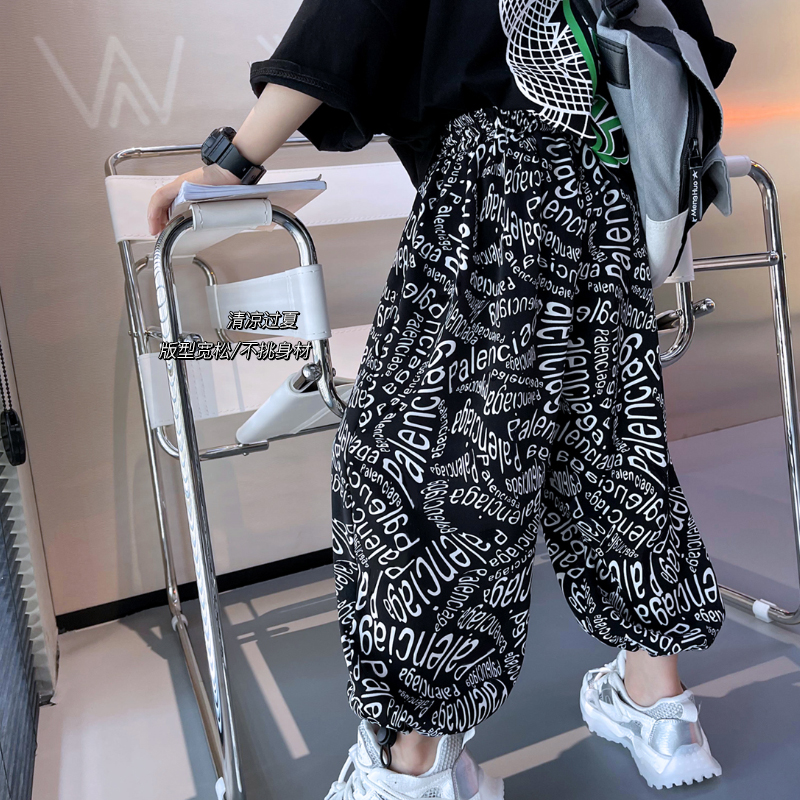 Parent-child pants, children's summer thin anti-mosquito pants, big children's Korean letters, casual air-conditioning pants, children's long pants, tide