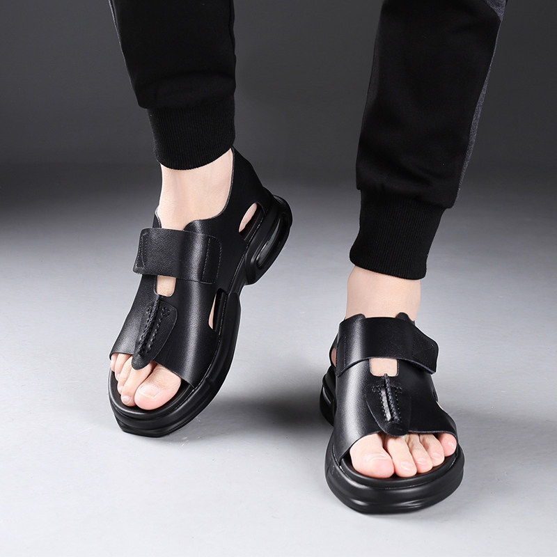 Genuine leather Roman shoes non-slip Summer Inn retro thick base light air cushion casual beach shoe damp soft-bottom sandal