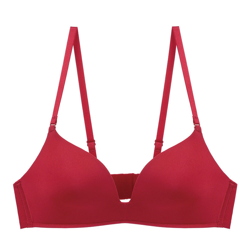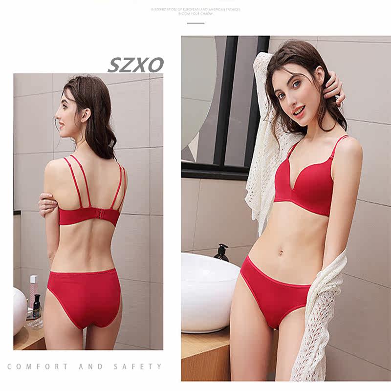 South Korea SZXO red incognito underwear women's one-piece rimless small chest gathered wedding underwear set of the year of life