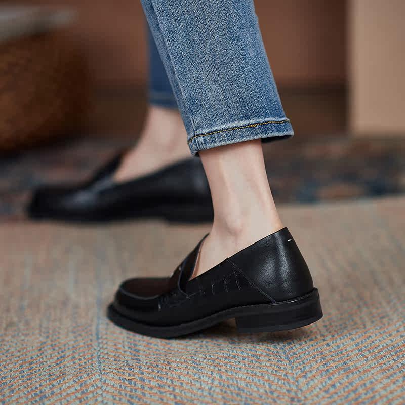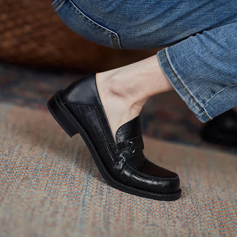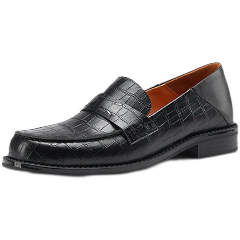 Orange peel CHEN2022 retro British style small leather shoes crocodile pattern square toe flat loafers leather bag shoes women
