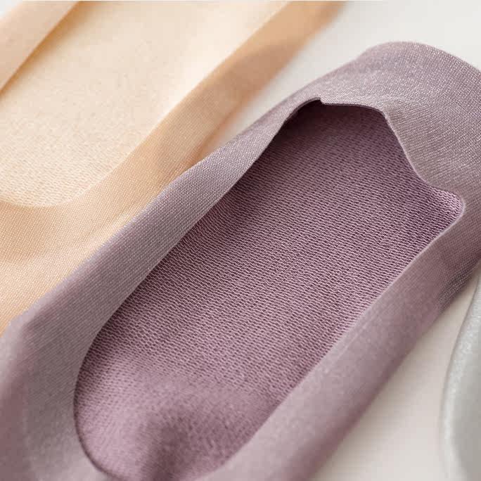 Luxury high-end silver silk ultra-shallow thin cotton invisible socks Japanese solid color non-slip boat socks ladies summer new style
