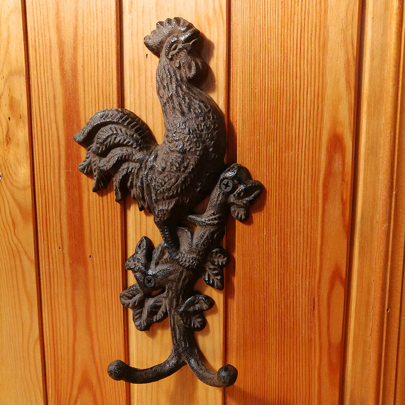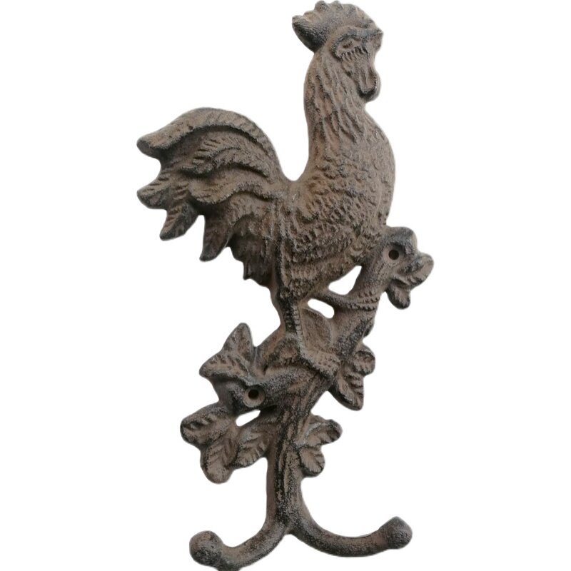 Cast Iron Large Rooster Double Hook Decoration Hook Retro Iron Rooster Clothing Cap Hook Wall Wall-mounted Nostalgic Animal Clothes Hang