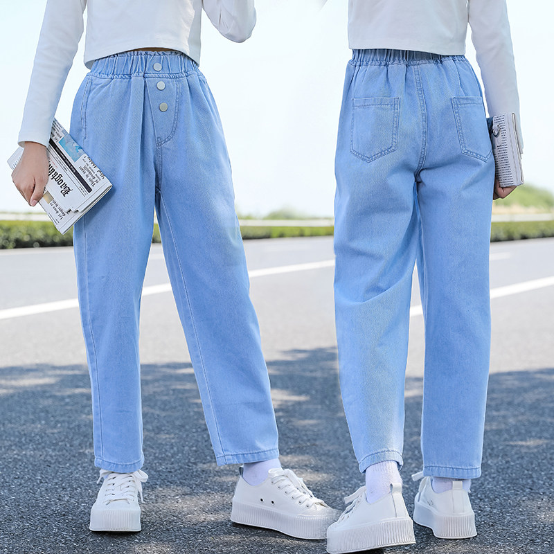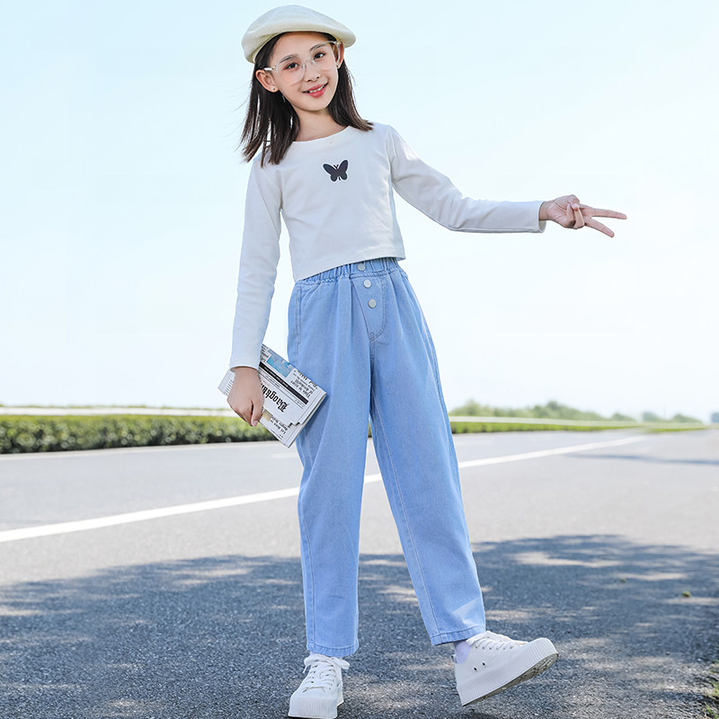 Girls' jeans spring and autumn new children's pants 2022 spring clothes in the big boy's Western style sports trousers casual pants