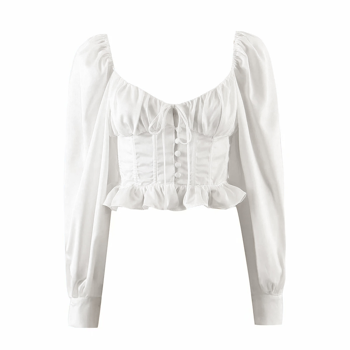 French court pure desire wind slim square collar long-sleeved shirt retro lotus leaf lantern sleeve keel tunic top women