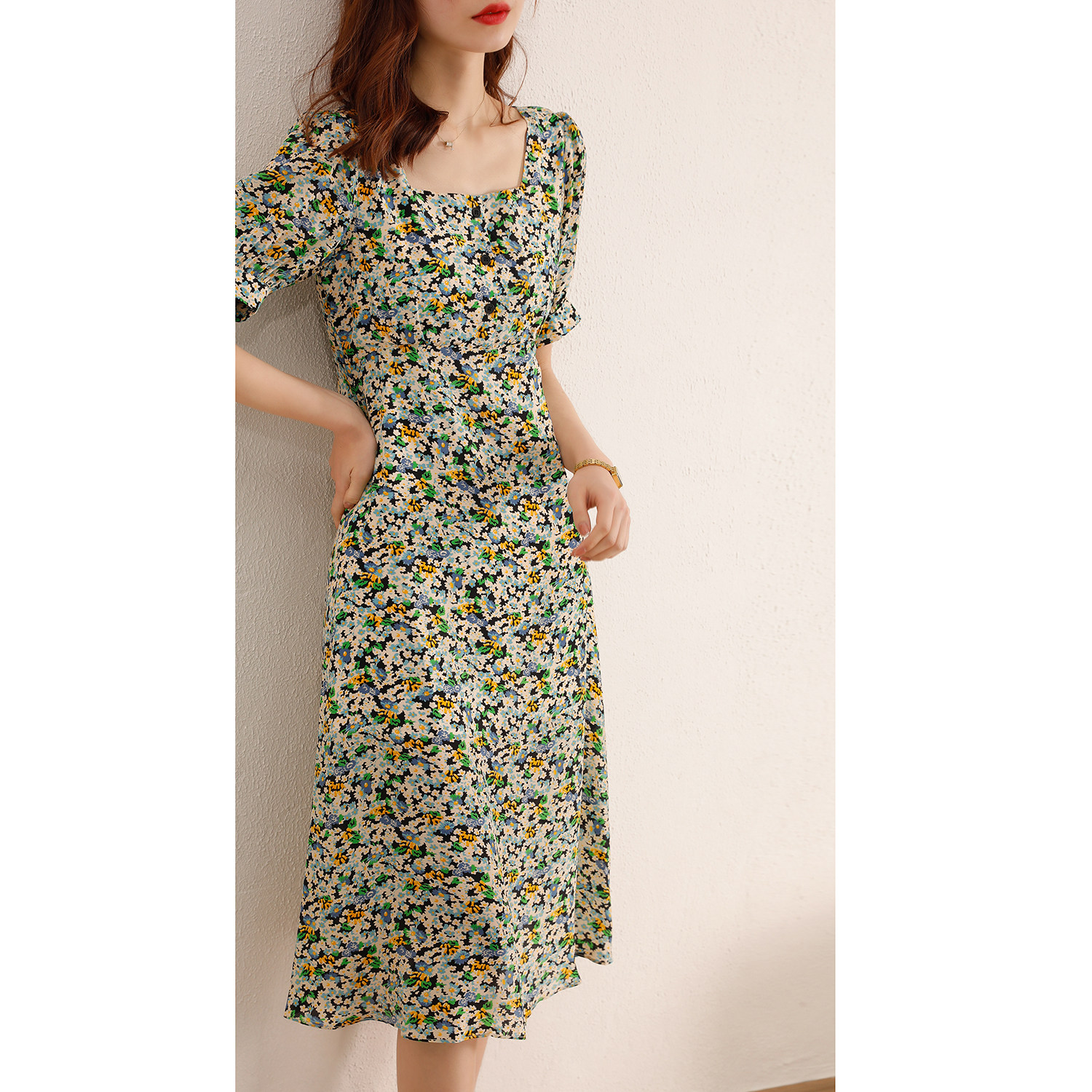 U-collar noble lady high-end silk floral dress women's summer 100 mulberry silk big-name young models 2022 new