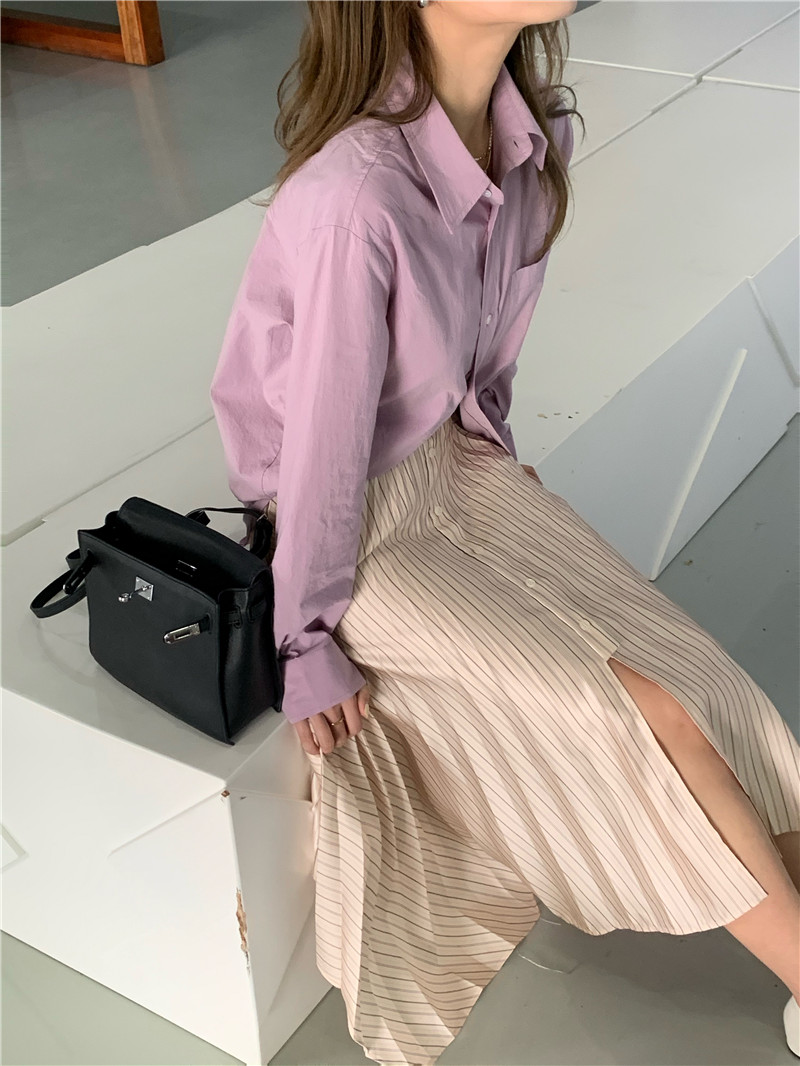 Small pull produced cotton wrinkled lapel shirt female commuter new 2022 new fashion long-sleeved top