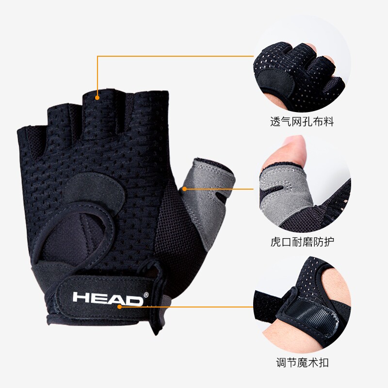 HEAD Hyde sports gloves men's and women's fitness half finger non-slip hand guard summer breathable thin gym children