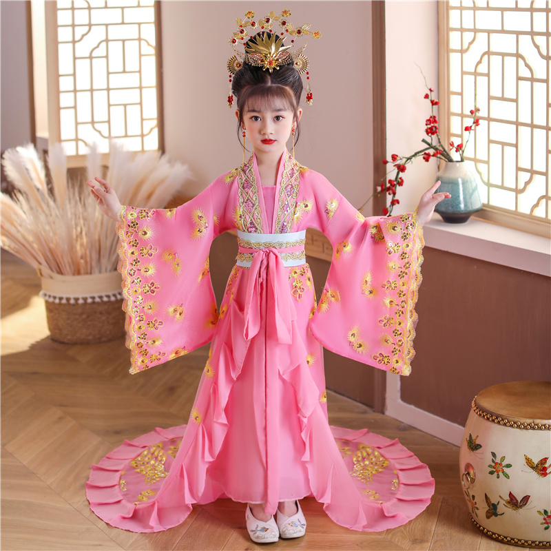 Children's new trailing Han suit girls'superfairy' Princess' ancient dress Empress China Wind Princess China Wind Princess Light Yarn waft out of the suit