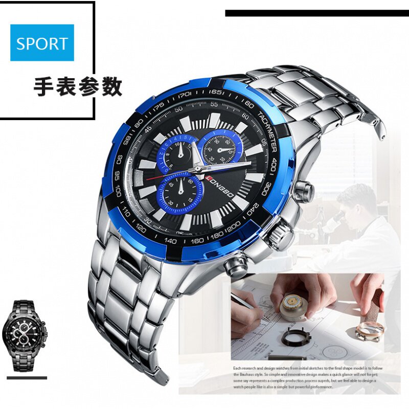 LONGBO Dragon Wave Business Casual Multifunction Steel Band Men Quartz Watches-Taobao