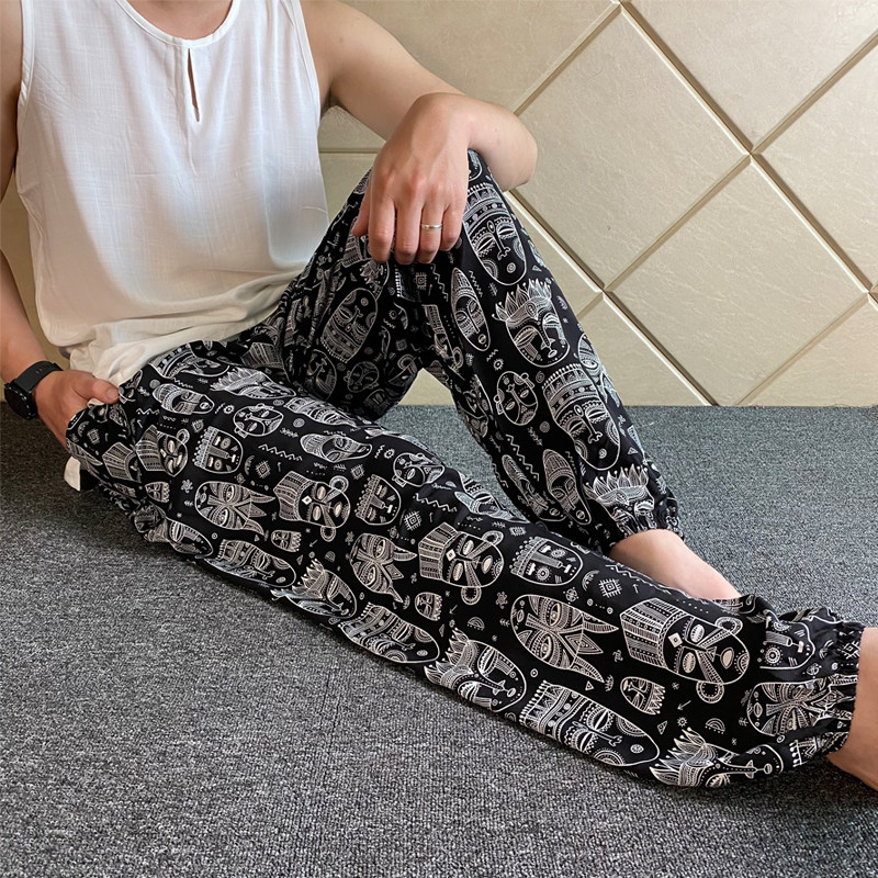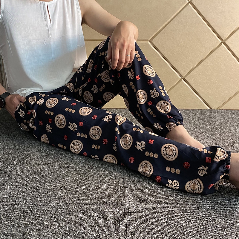 Medium Youth Cotton Silk Pants Long Pants Light Cage Pants Summer Loose Artificial Cotton Tai Chi Morning Practice Plus Fertilizer for men and women Cotton Trousers