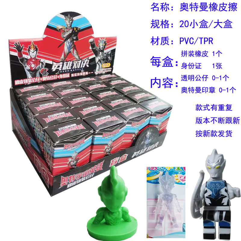 Ultraman monster eraser with card blind box large toy stationery primary school students creative building blocks rubber doll