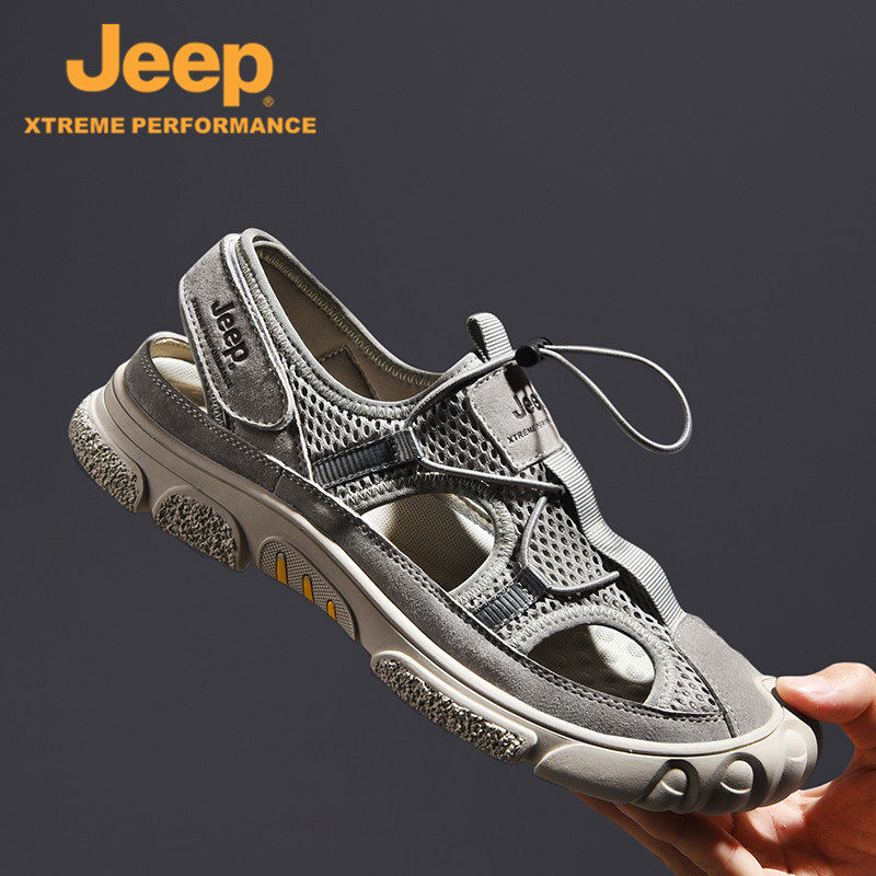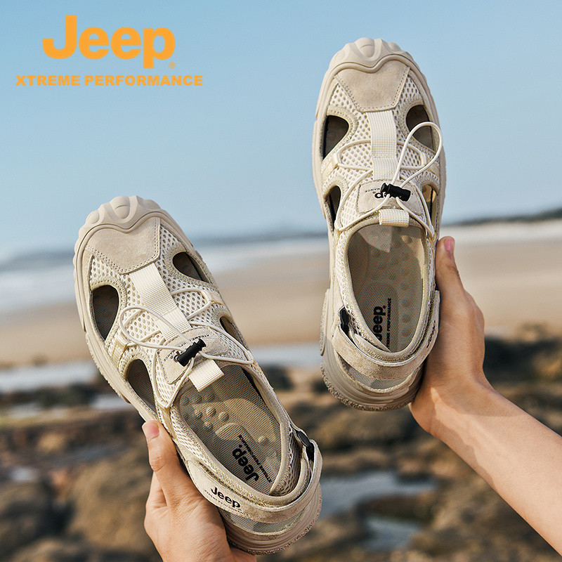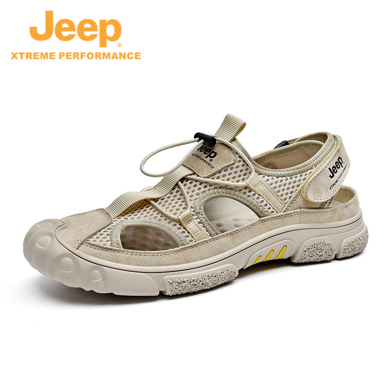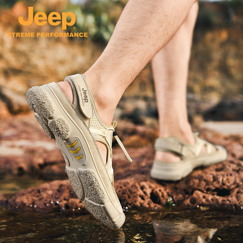 JEEP Sandals Men's Wave Summer New Genuine Leather Baotou Outdoor Leisure Sports Hollowed-out Cave Shoes Sandals Sandal Beach Shoes