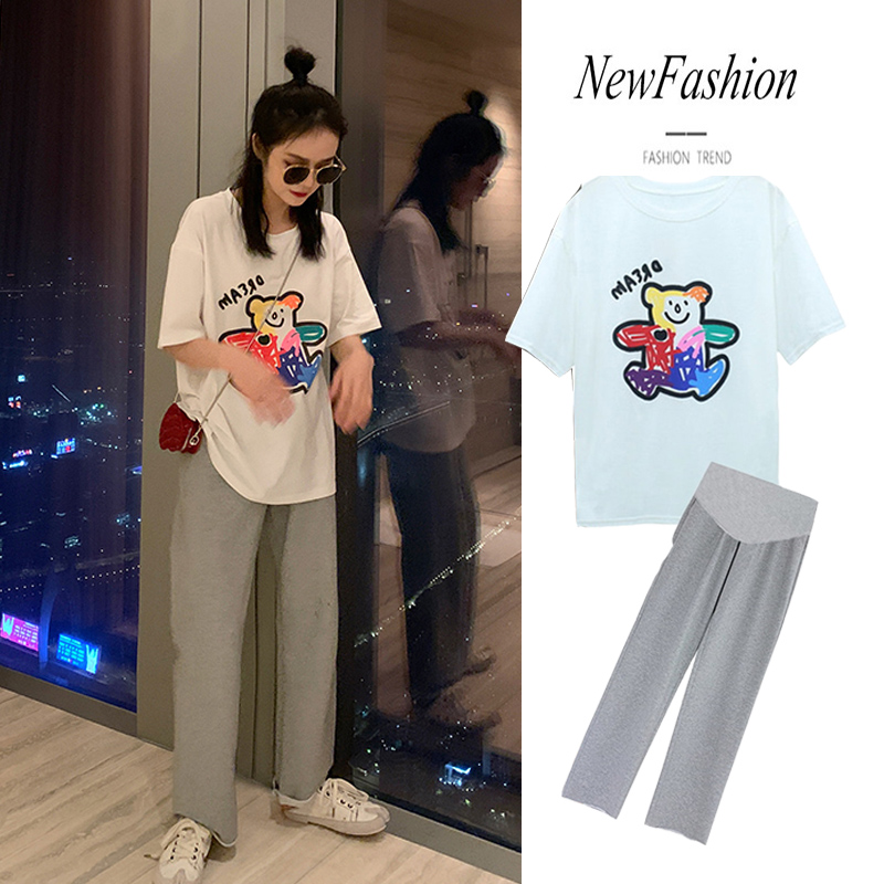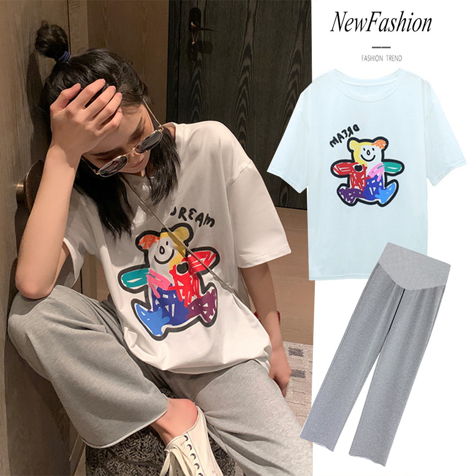 Pregnant Woman Summer Clothing Fashion style Pure Cotton Short Sleeve Shorts Loose Casual Summer Suit Easy Summer Net Red two sets