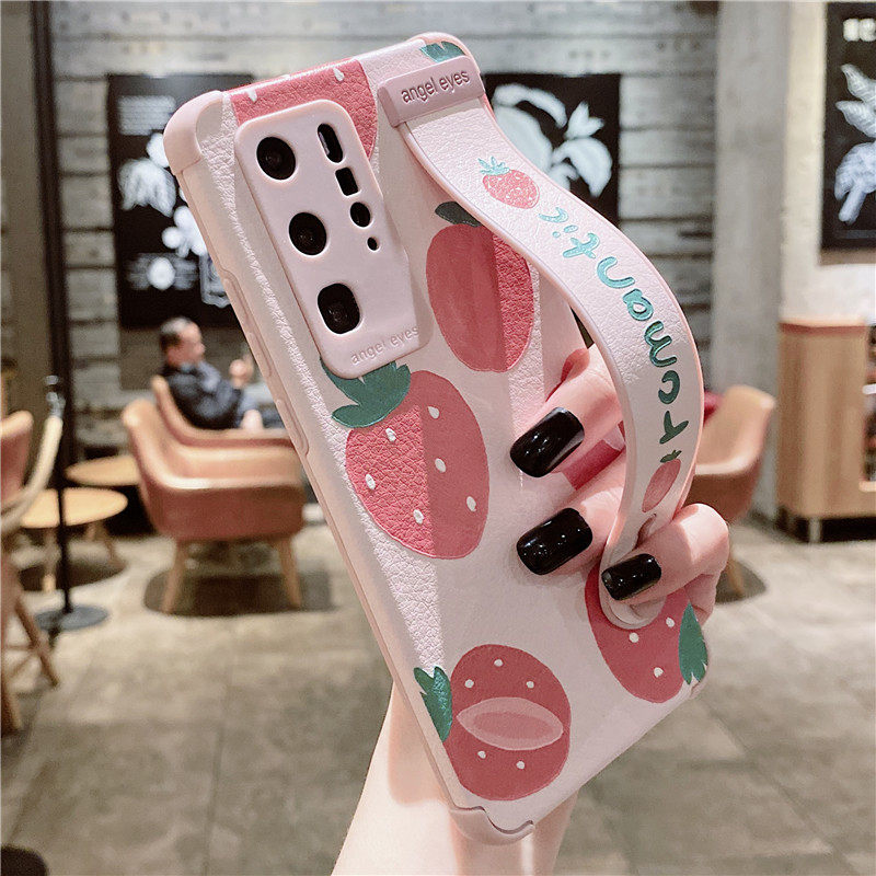 Fresh strawberry suitable for Huawei mate30 mobile phone protective shell mate40pro lens all-inclusive p40pro silicone soft shell nova7 cute P30 anti-fall glory 30 wrist guard