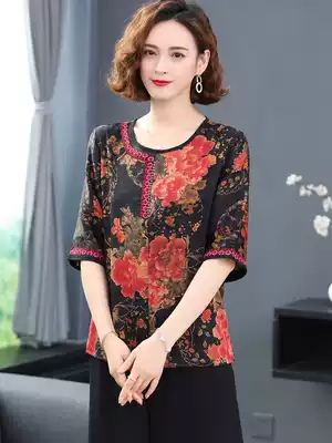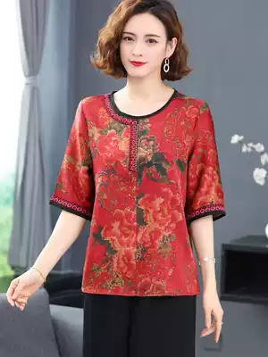 High-end heavy silk shirt female summer short sleeve fragrant cloud yarn short t middle-aged and elderly foreign style T-shirt mother mulberry silk coat