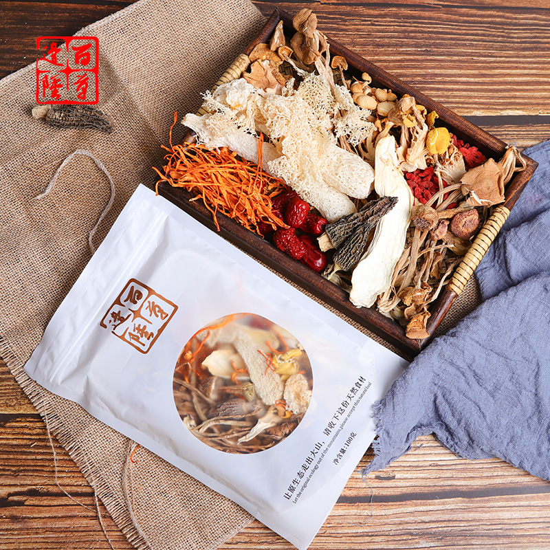 Baicao Frontier Colorful Mushroom Soup Package Yunnan Morel Mushroom Pine Rong Mushroom Package Soup Mushroom Package Soup Package Soil Specialty Dry Goods