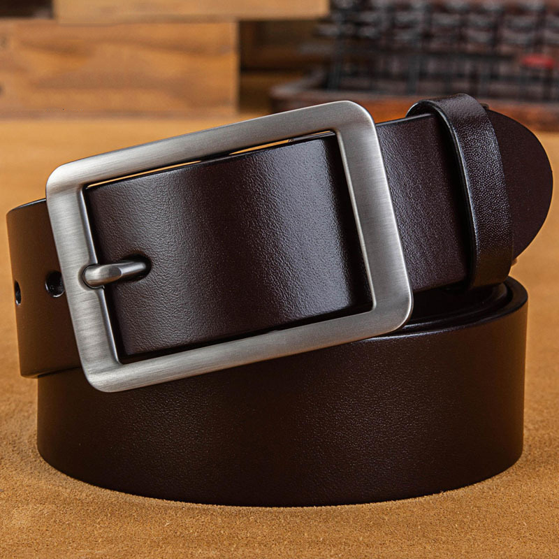 High-end pure bull leather men with leather large-code fat man with long-range trousers with retro jeans belt