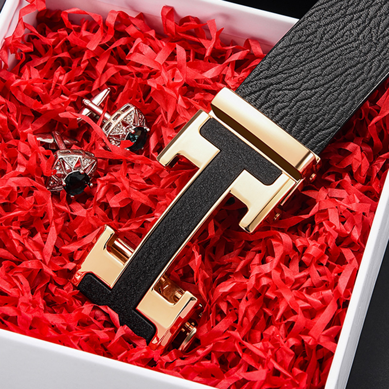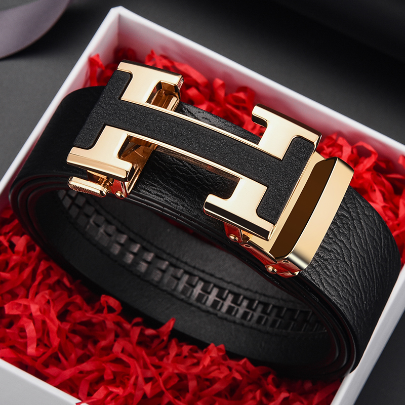 New high-end male head pure bull leather automatic button belt and leisure leather business belt tidal belt