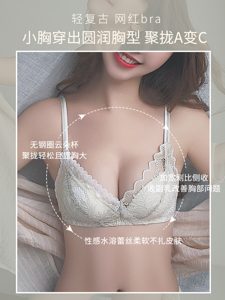 Tide Lace Lace Side Underwear Women No Steel Ring Small Breasts Poly-Adjusted Type Closeted Breast Girl Sexy-Bra Suit