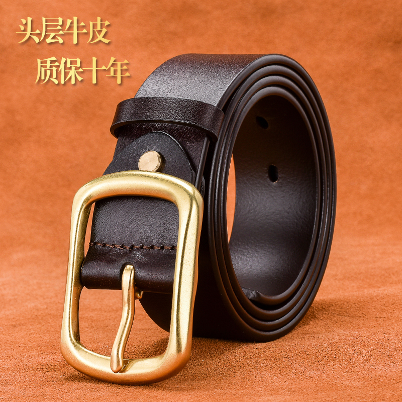 Belt men leather leather pure cowskin retro needle button belt jeans casual pants with a hundred and tide upgrade