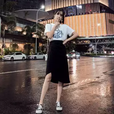2021 summer new fried street fashionable versatile short-sleeved shirt women's high waist slim skirt two-piece set
