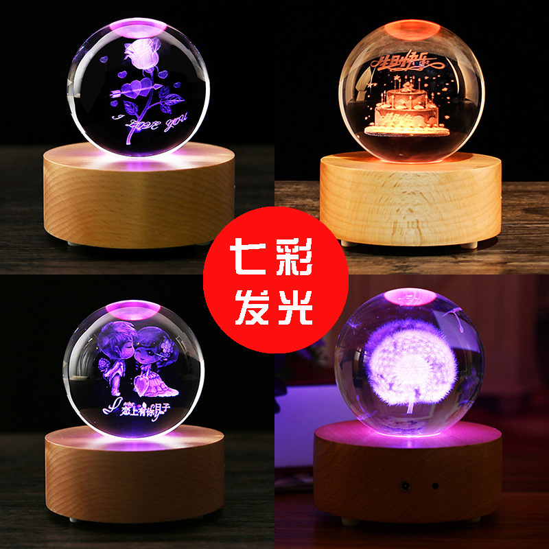 Crystal Ball Woody Bluetooth Music Box Octaonic Box Creative Handmade Diy Girl Birthday Present Girl Send Children