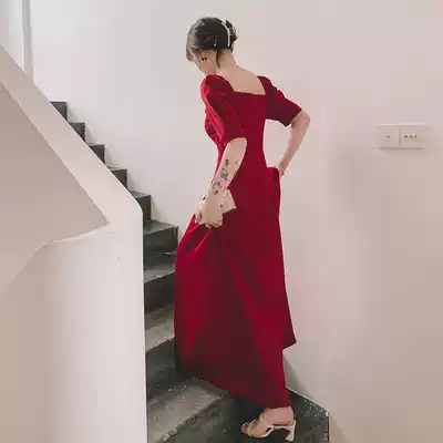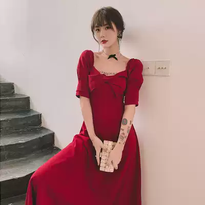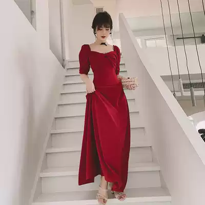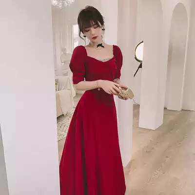 Toast clothes can usually wear 2021 new bridal wine red engagement dress thank you banquet back to the door daily dress