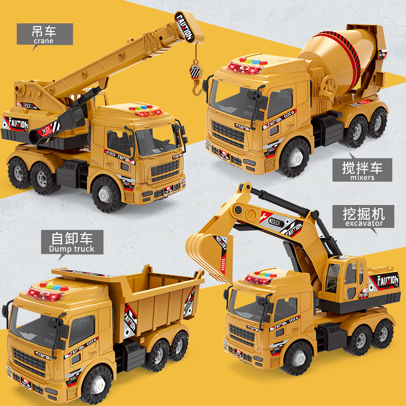 Children's Large Inertial Engineering Car Excavator Trailer Trailer Mixer Boys Lightmusic Toys