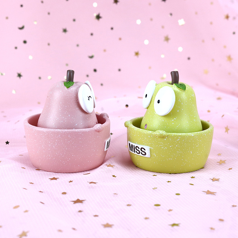 Cute big-eyed pear car desktop decoration doll car pendulum craft gift decoration spring shaking head resin craft