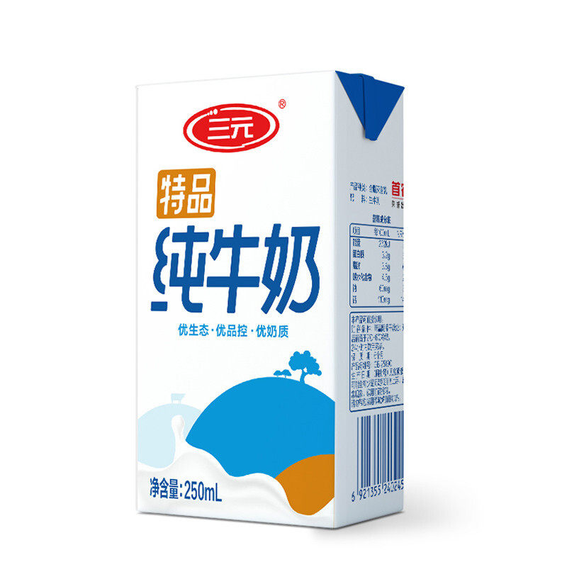48 boxes] RMBthree Tint pure milk 250ml * 24 boxes * 2 boxes full box gift boxes Nutritional Breakfast milk