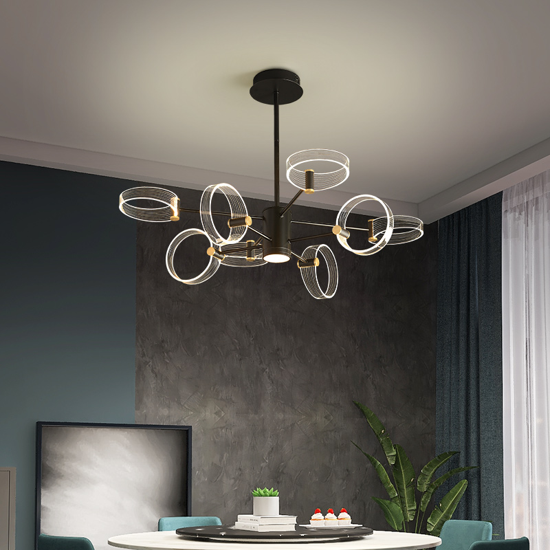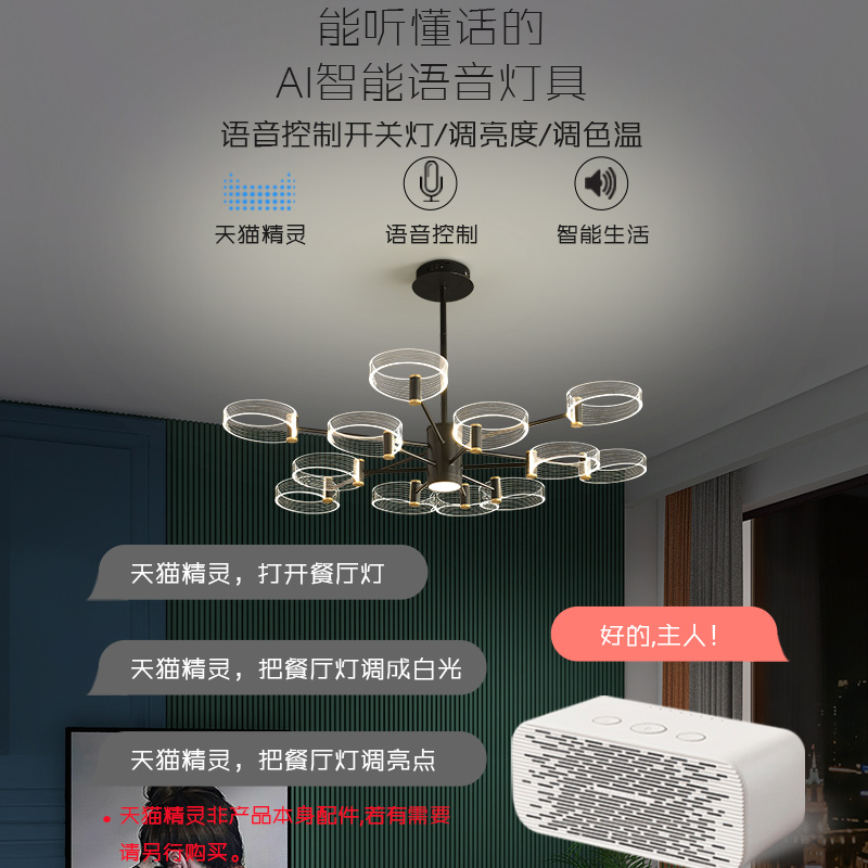 Living room chandelier modern minimalist light luxury atmosphere led Nordic dining room light bedroom hall three-color ring smart light