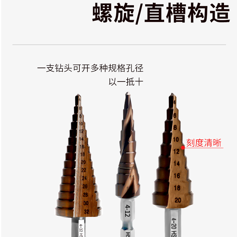 Pagoda drill bit contains cobalt conical hex shank hole opening device woodworking aluminum stainless steel special ladder electric wrench reamer