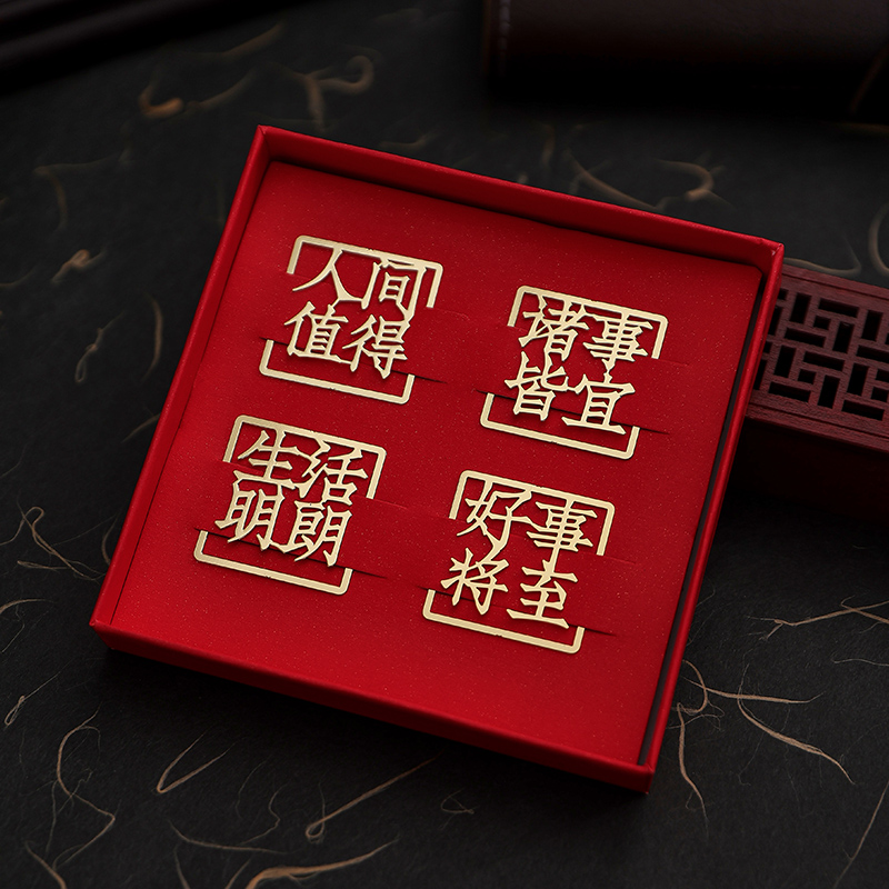 China Wind Metal Bookmark Customizable Gufeng Students Creative Book art text paragraph hollowed-out Good luck blessings High-end Gift Box Sets Birthday Gifts Send Bestie Girlfriends Little Gifts Cute