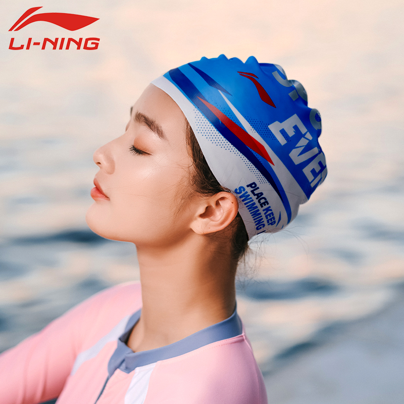 Li Ning swimming cap Women's waterproof silicone non-hair long hair ear protection face face small men's professional swimming cap big head circumference