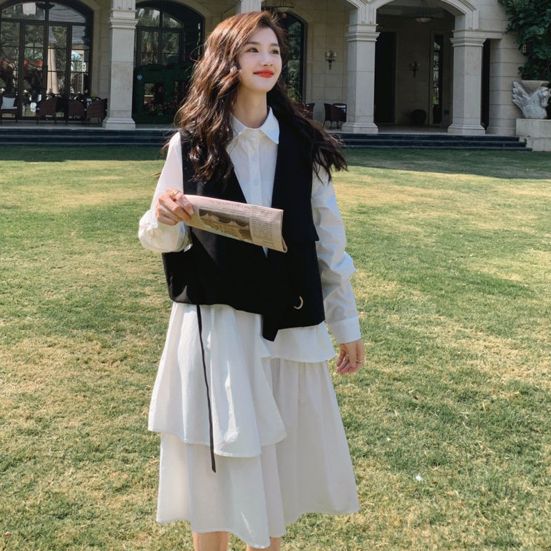 Pregnant women net red suit dress Western style spring and autumn does not show the pregnant belly fashion breastfeeding shirt skirt two-piece set
