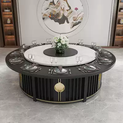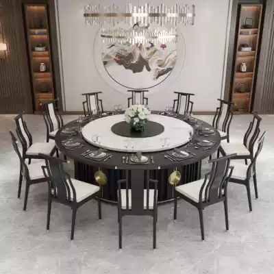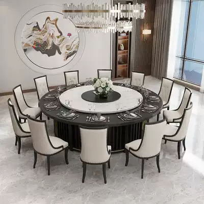 New Chinese style hotel dining table Large round table electric turntable Marble automatic 15 people 20 dining room with electromagnetic stove high-end