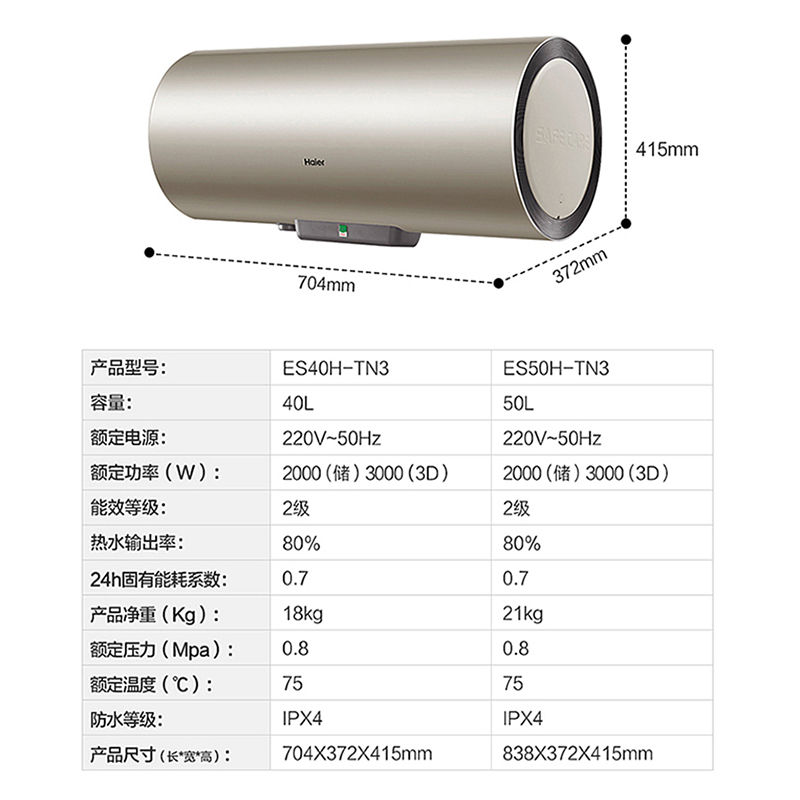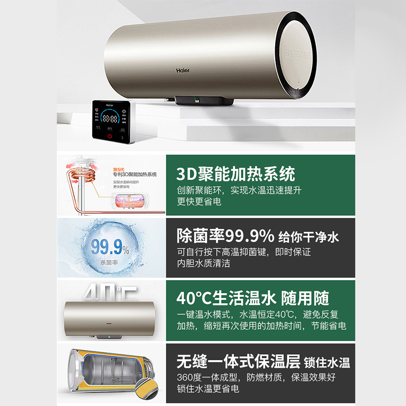 Haier wire control panel 50 liters water storage type 3D fast heat fully hidden electric water heater dressing room small shower TN3