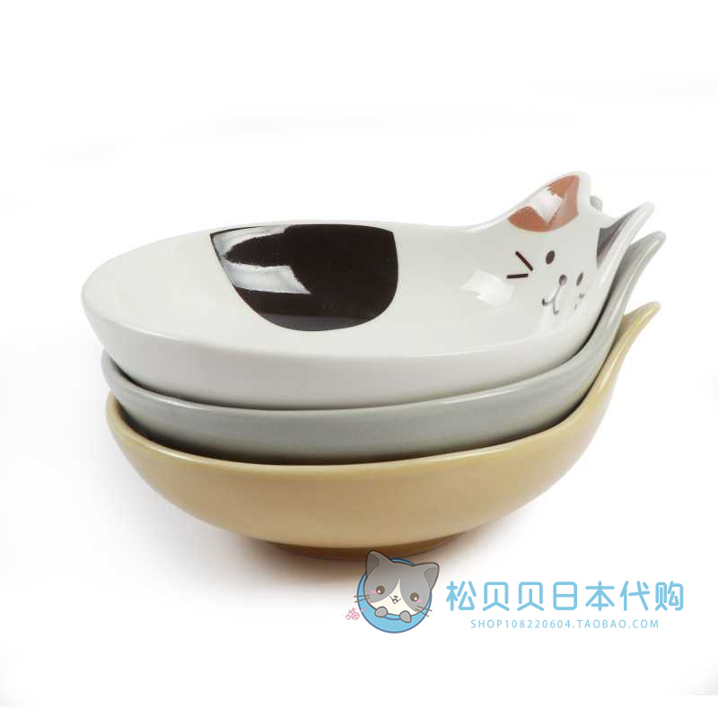 Japanese Imported Cat Ear Ceramic Bowl Cute Solid Cat Face Dessert Bowls Cartoon Day Style Home Children Bowls Cutlery