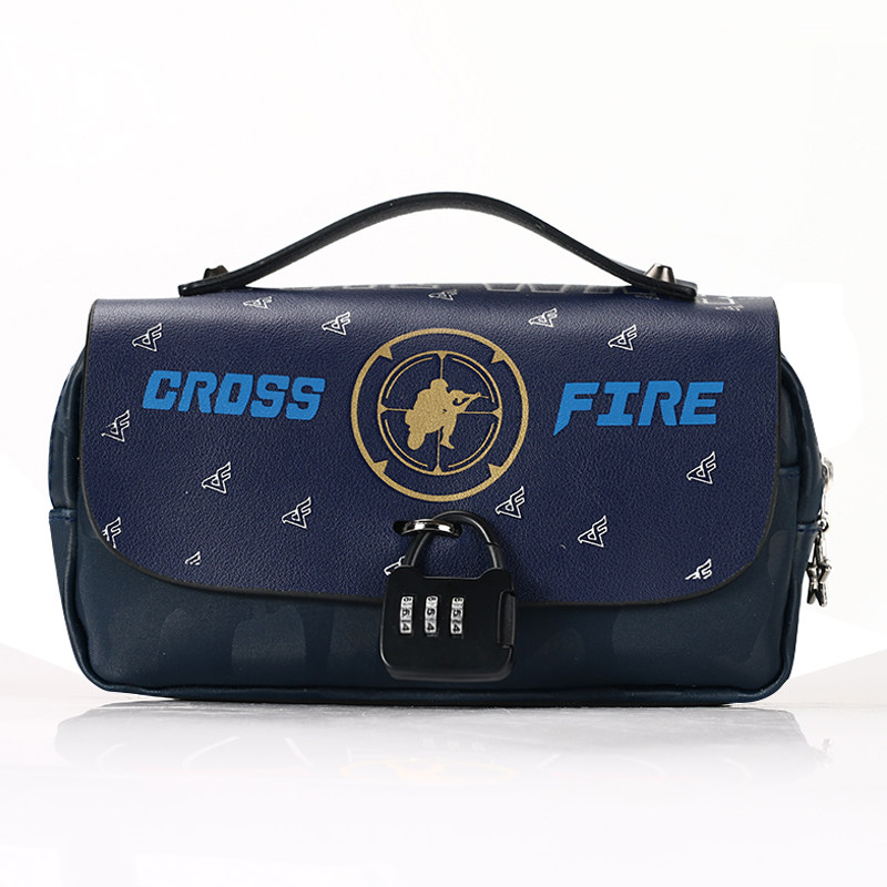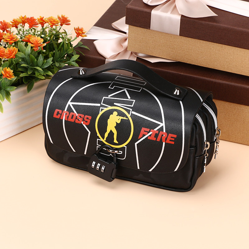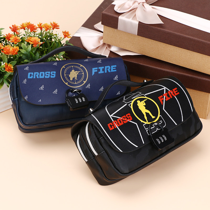 CF Soft Leather pen bag Primary school boy Double double large capacity Junior high school stationery bag Children pencil cartridge password lock