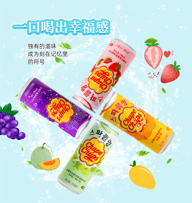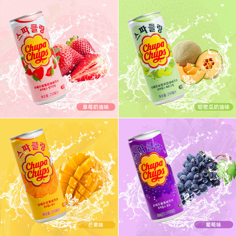 South Korea imported Zhenbole fruity soda 250ml*4 bottles of pearl pearl grape net red carbonated drink whole box