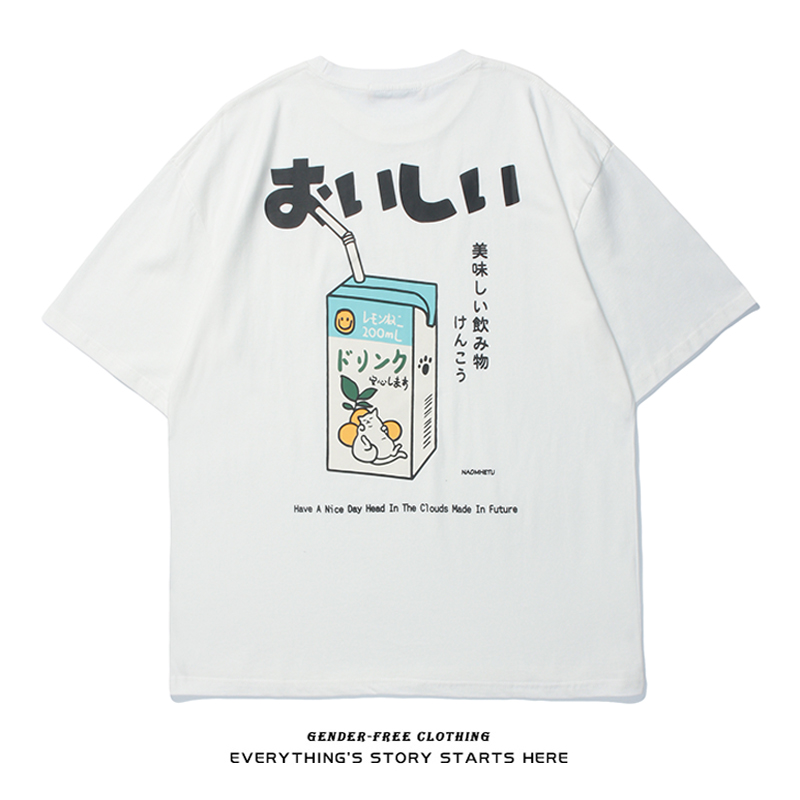 ZOROHOM Japanese trend printing cotton casual T-shirt women's men's loose Hong Kong style all-match summer clothes