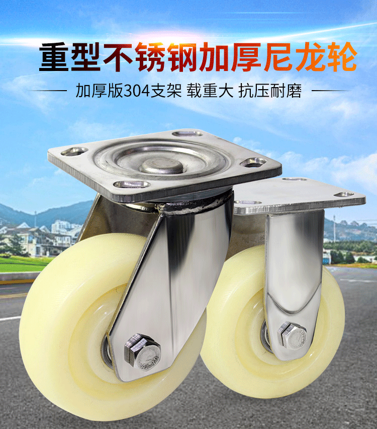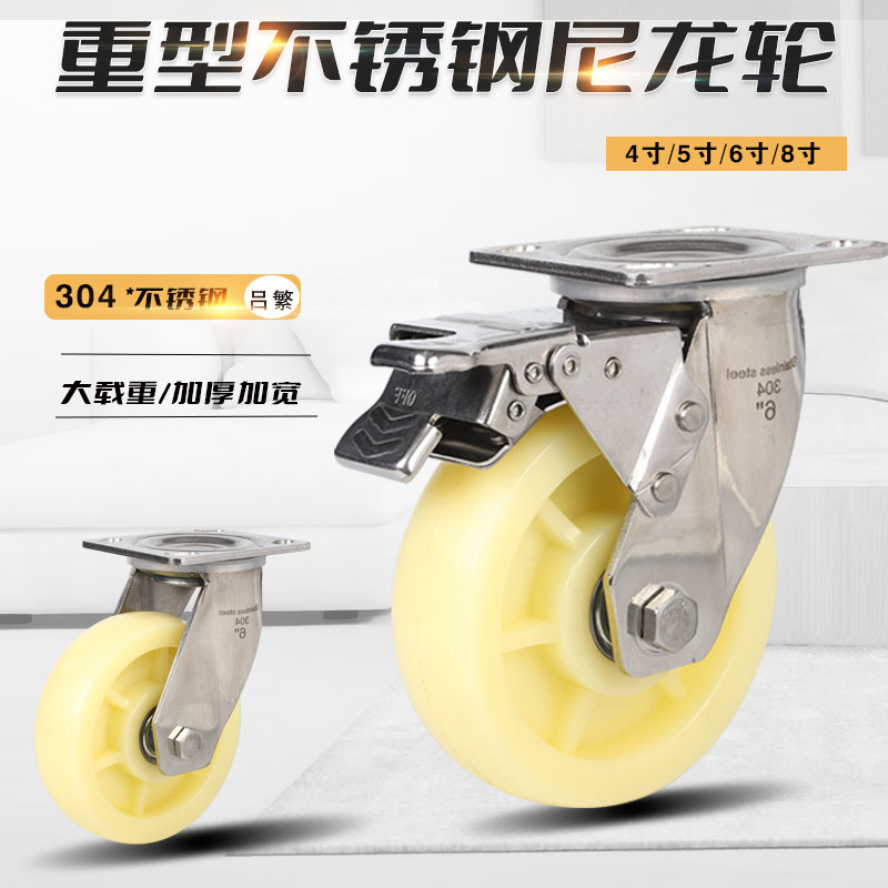 Heavy-duty 304 stainless steel casters 8 inches 6 inches 5 inches 4 inches nylon universal wheel load-bearing wear-resistant and durable industrial wheels