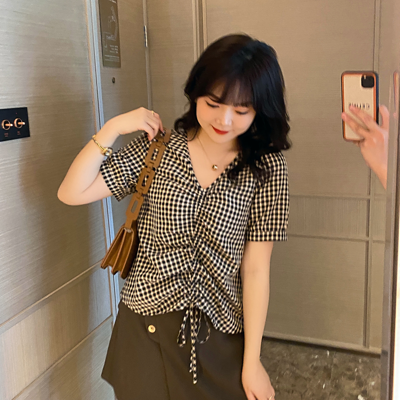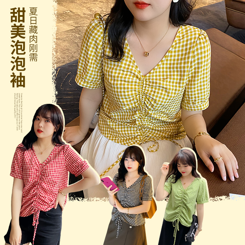 Multi-Treasure Large Size Women's Dress 2022 Summer Dress New Loose Design Sensation Bubble Sleeves Blouse Chubby Weight Slim Fit Slim Fit