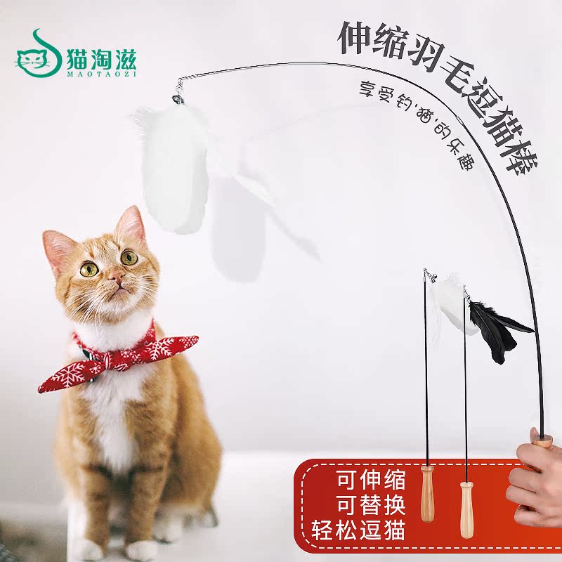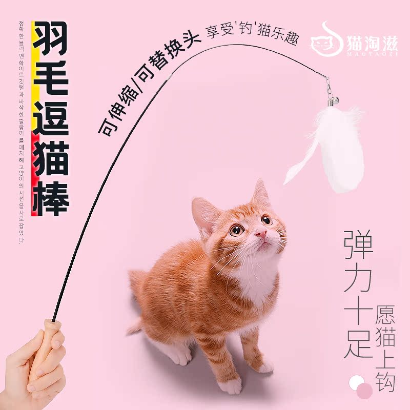 Cat toy feather bite-resistant replacement head retractable fairy funny cat stick to relieve boredom bell cat self-healing toy supplies