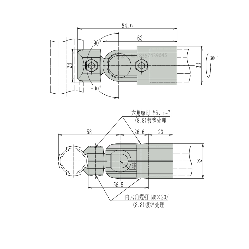180-degree fixed outer joint 28mm third generation of wire rod accessories aluminium alloy fine tube connector aluminium tube profiles