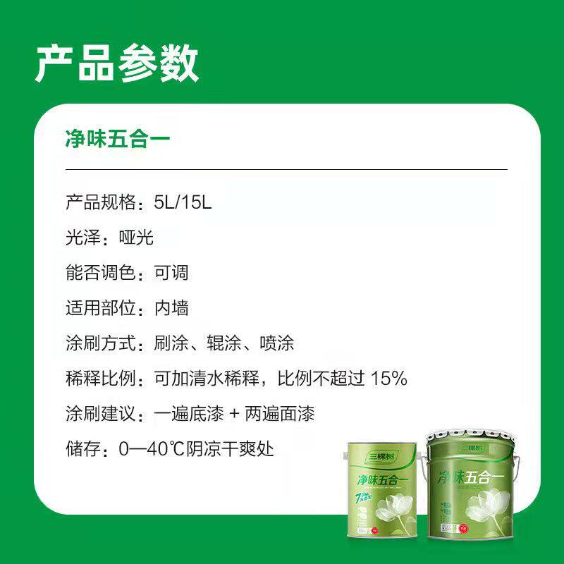 Three tree latex paint indoor household paint wall paint paint interior wall self-brushing wall white paint net taste five-in-one
